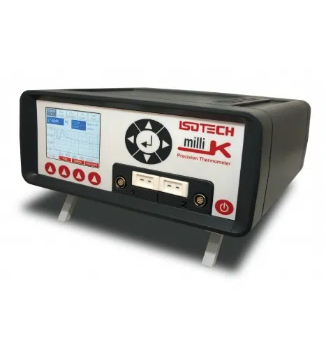 The Isotech milliK precision thermometer has two input channels for sensors and a third channel for current.